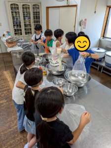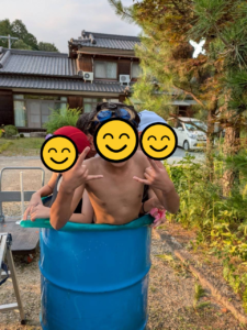 夏休み・お勤めのお稽古:最終日にお楽しみ会として流し素麺、前日にお泊り会をしてドラム缶風呂。